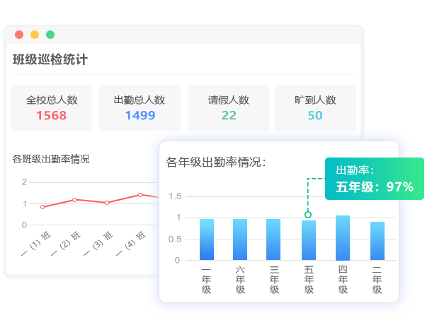 統計學生出勤情況,校導主任可實時刷新報表掌握當天晨檢情況