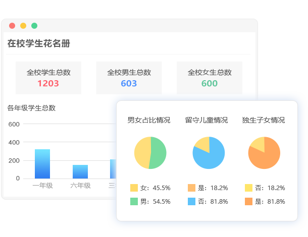 學生休學、轉校學籍變動時,在線登記,系統自動更新,學生異動情況一清二楚