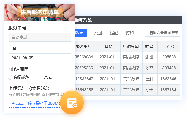 支持智能派單、在線報修、上門維修、客戶反饋等場景